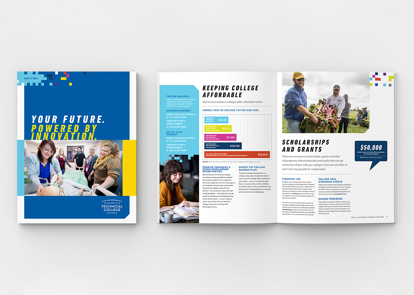 This piece is entitled "Your Future: Powered by Innovation" and positions the Wisconsin Technical College System as an educational setting built for and responsive to change.